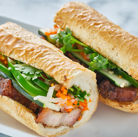 外はカリッと、中はふんわりのバゲットに、香ばしく焼き上げた豚焼肉をたっぷりサンド。ベトナム特有の甘辛い味付けと、なますの酸味、香草の爽やかさが絶妙にマッチ。ボリュームがありながら後味は軽やかで、ランチやおやつにもぴったり。食べ歩きにもおすすめの一品です。※写真はイメージです。