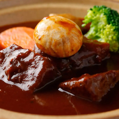 厳選した神戸牛を赤ワインと特製デミグラスでじっくり煮込みました。
