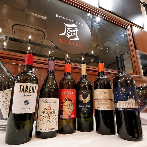 当店ではおすすめのシチリアワインをメインに取り扱っております◎日照時間の長いシチリア産のワインは、高品質かつリーズナブル♪赤16種、白9種を取り揃えており神戸肉との相性も抜群です!お試しください!