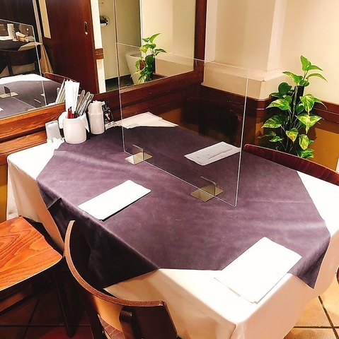 開放感のある店内は、テーブル席をメインにご用意しており、2名様から少人数でのご利用に最適です◎デートや記念日、カジュアルな接待など、様々なシーンでご活用いただけます。感染症対策としてアクリル板も設置しており、安心して食事を楽しめる空間です♪