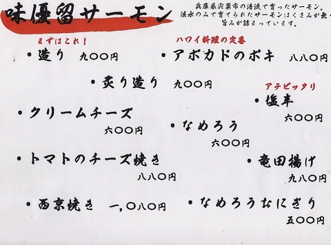 兵庫県宍粟市で淡水だけで育ったサーモン。海水で育てるよりも少し時間がかかりますが、臭みが少なくしっかりとした歯ごたえと深い旨味が魅力的なサーモン◎そんなサーモンを使った逸品を多数ご用意しております!是非、ご賞味ください!
