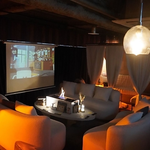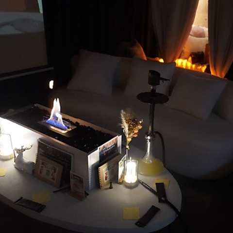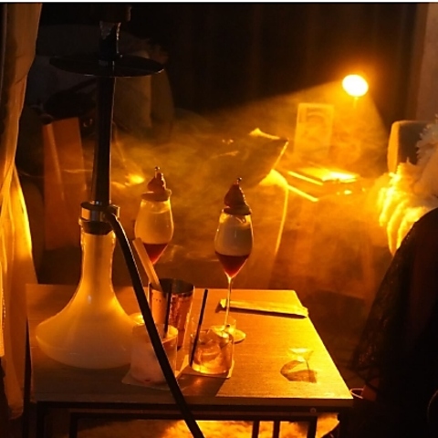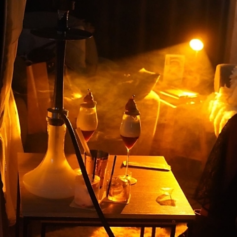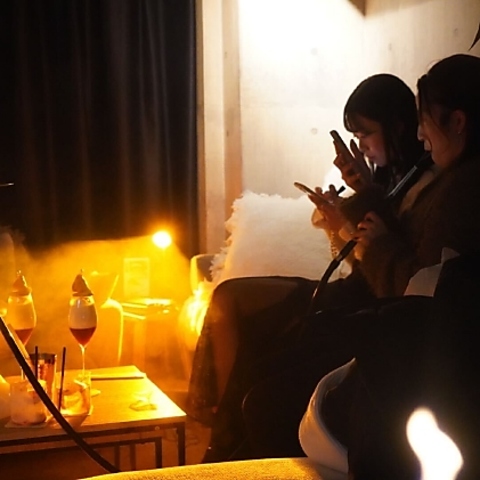 ダウンライトが織りなす幻想的な雰囲気の中で、ドリンクやシーシャを片手にゆったりと二人の時間を満喫◎
