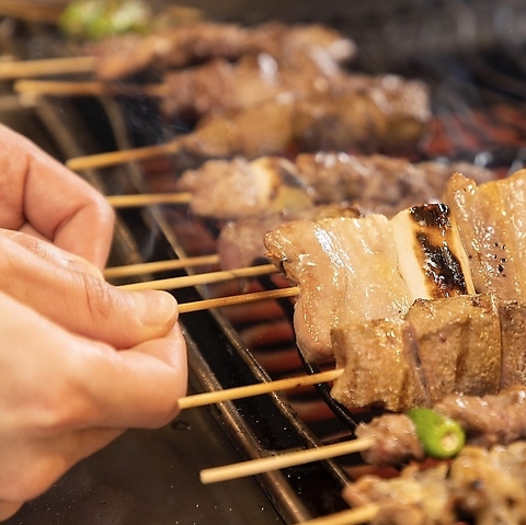 新鮮な生の豚肉を仕入れ、職人が丁寧に焼き上げる「やきとん」は豚のかんぱい家自慢の逸品!生の素材にこだわったやきとんは11種類。1本110円~ご用意しています♪