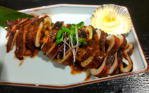 八戸の代表的な郷土料理。イカの腑とゲソを胴に詰めて丸ごと焼きました!生姜の風味が効いてます。