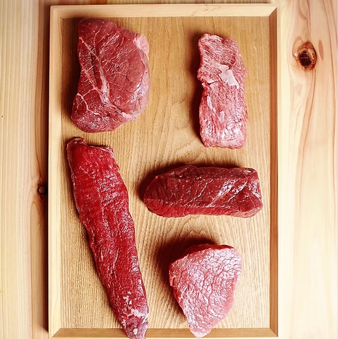 当店のステーキは、厳選された黒毛和牛のお肉を、熟練技で豪快かつ完璧に火入れします◎ 旨みを最大限に引き出す火入れは、まさに職人技...ナカニク10円/g、ウチモモ12円/g、コモモ14円/g、ハバキ16円/gと、お好みに合わせてお選びいただけます。お肉本来の味を存分にお楽しみいただける、至福の逸品をぜひご堪能ください。