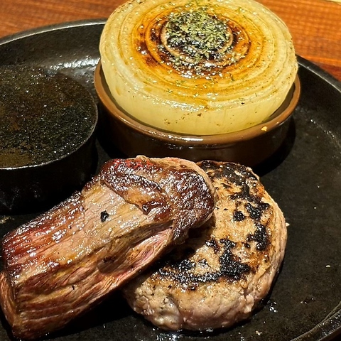 お任せ厳選部位の黒毛和牛ステーキ(150g)とミートイートアップ自慢の自家製和牛ハンバーグ(150g)の 大満足欲張りコンボ 2/3ポンド(300g)
