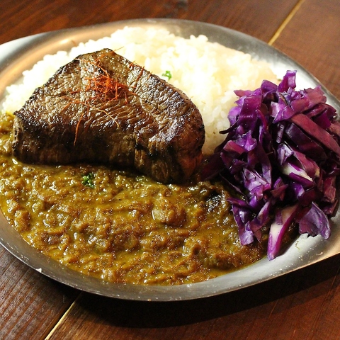 約20種類のハーブ&スパイスで仕上げた超本格派スパイスカレー! 和牛ステーキトッピング!! 元々店主がこだわりのスパイスカレー屋さんを過去8店舗経営していた名残がここで味わえます^^