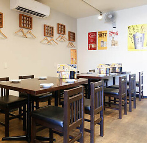 広々としたカウンター席は全12席。2~3名様のグループやお一人様でのちょい飲み、デートにも最適です。また、背もたれ付きの椅子でゆったり座れるテーブル席は、席を繋げてグループでの宴会や女子会に便利。様々なシーンに柔軟に対応できる当店で、美味しい料理とお酒を心ゆくまでご堪能ください。