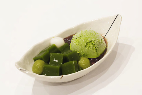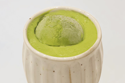 厳選した抹茶を材料に毎日手作りしているこだわりのゼリーと自慢のソフトクリームがのった贅沢な逸品。