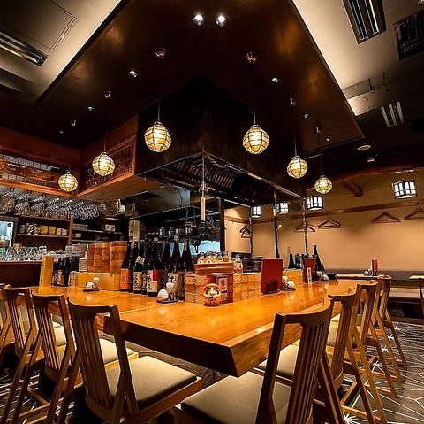 お一人様はもちろん、大切な方とのデートやサシ飲みに最適なカウンター席は、まさに大人の隠れ家。仕事帰りにふらっと立ち寄り、目の前で仕上げられる料理の香りを楽しみながらゆったりと過ごせる特等席です。落ち着いた雰囲気の中で会話も弾み、日常の喧騒を忘れて美味しい料理とお酒に浸る贅沢なひとときを演出いたします。