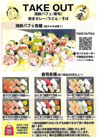 客席へのご案内 席毎に一定間隔あり テーブル/カウンターサービス 料理の大皿提供なし、モバイルオーダーによる注文 会計処理 非接触型決済あり テイクアウトサービス テイクアウト用待ちスペースあり |