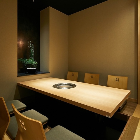 当店の象徴『板前カウンター』ライブ感をお楽しみいただくとともに、調理場が見える安心感もご好評です。接待・女子会・各種宴会・記念日・デート、ご家族で!照明にもこだわった、ラグジュアリーな和モダンな空間。テーブルや個室をご用意。においに配慮した無煙ロースター採用。
