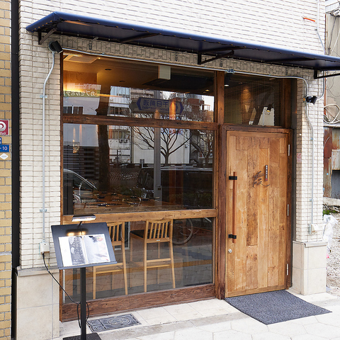 木の扉に錆鉄板で作られた「霞」の文字が目印。大阪メトロ御堂筋線なんば(大阪メトロ)駅16出口より徒歩約5分/近鉄奈良線近鉄日本橋駅3出口より徒歩約3分/大阪メトロ堺筋線,大阪メトロ千日前線日本橋(大阪)駅3出口より徒歩約3分