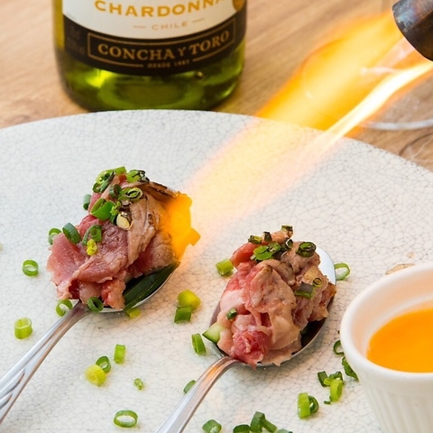全国各地の牛・豚・鶏の贅沢な銘柄肉の数々♪A4和牛の肉寿司やステーキ、チーズリゾットなど多彩にご用意ございます!肉バル料理とビール、もしくはワインの組み合わせをご堪能ください!