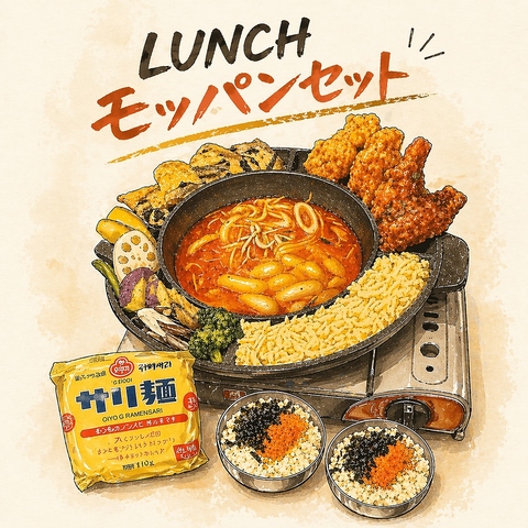 プデチゲ、コリアンチキン、海鮮チヂミ、蒸し野菜、チーズ、ライスがついたお得すぎる”UFOプデチゲ モッパンセット”は、ガッツリ食べたいランチにも、昼飲みのメインとしてもオススメ◎他にも名物サムギョプサルやさっぱり冷麺、カンジャンセウ丼などご用意しております!夜メニューや単品飲み放題もご注文OK★