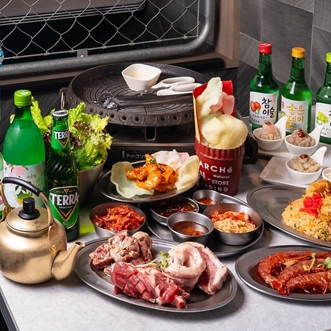 赤字覚悟の食べ放題プラン!!3種の肉のサムギョプサルが食べ放題♪他にもコリアンチキンや海鮮チヂミなど盛りだくさんです♪〆のキンパとデザートまでガッツリお楽しみください★+1,650円で2時間飲み放題をお付け頂けます◎