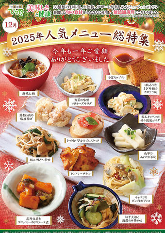豆・ごま・わかめ(海藻類)・野菜・魚・しいたけ(きのこ類)・イモ・肉・果物。カラダが喜ぶ食材のチカラを使い、栄養バランスを考えたメニューをお楽しみください!