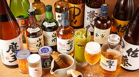 おすすめの「生クラフトビール」は、季節と料理との組み合わせを考え月毎に2種類をご提供。ほかにもジャパニーズウイスキーメインのウイスキーをはじめ、焼酎好きならどなたでも知っているような定番に加え、おすすめ銘柄も1~2本を揃える焼酎や、鮮度にこだわったカップで楽しむ日本酒は変わり種もラインナップ。