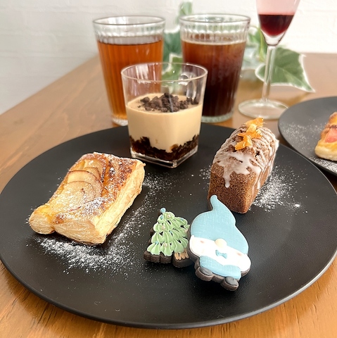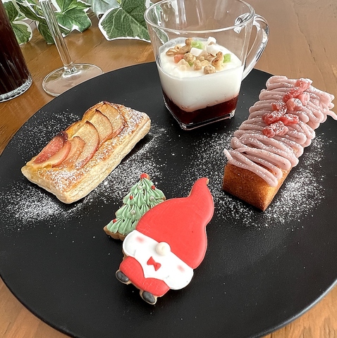 12月限定!・いちご餡のせパウンドケーキ・レアチーズケーキ&ベリージャム・アップルパイ・アイシングクッキー(プレーンクッキー)・ドリンク(コーヒー or アイスティー or ベリーソーダ)※2日前までに要予約