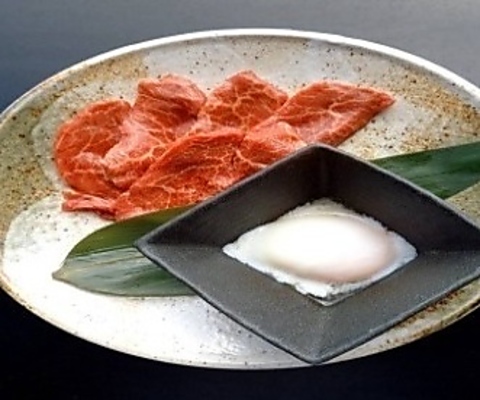 「カルビ」×「温泉卵」の共演!自家製ダレと温泉卵にくぐらせて食べるカルビは絶品です!