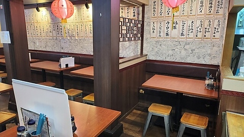 【中華の情緒漂う大空間で宴会を♪】赤い提灯や伝統的な装飾が施され、まるで中国の街角にいるような気分に。広々としたテーブル席が揃い、ゆったりとした時間を過ごせるのが魅力です。各テーブルにはコンパクトな調味料セットがあり、料理を自分好みにアレンジできるのも嬉しいポイント♪