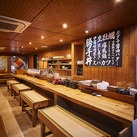 生牡蠣が1個99円で楽しめる大衆酒場!広々とした店内には座席やカウンター席を完備し、夜景も楽しめる特等席もございます。充実した日本酒、焼酎、ワイン、カクテルと共に、贅沢なひとときをお過ごしください。