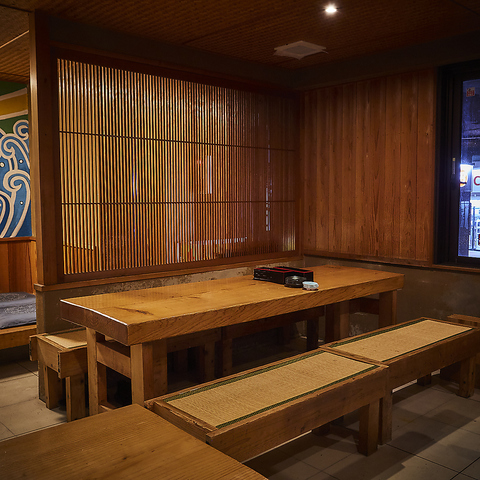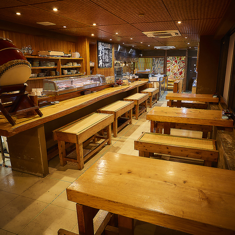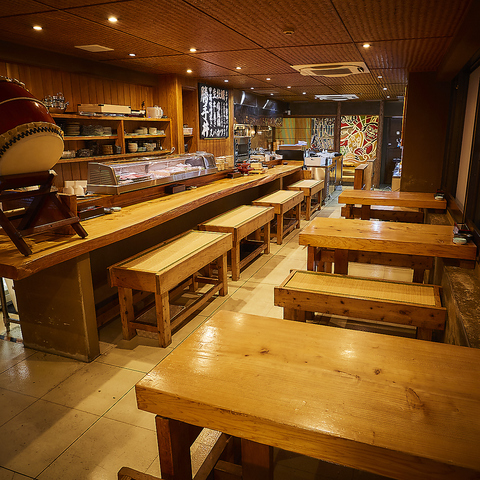 店内はテーブル席メインの大衆感満載♪♪団体様でのご宴会にもピッタリ!気取らず、かつ雰囲気抜群のカウンター席。ライブ感も満載でおひとり様でのご利用も大歓迎です!お酒と食事をゆっくりとお楽しみいただけます。日常を忘れてリラックスできる、癒しの時間をご提供します。