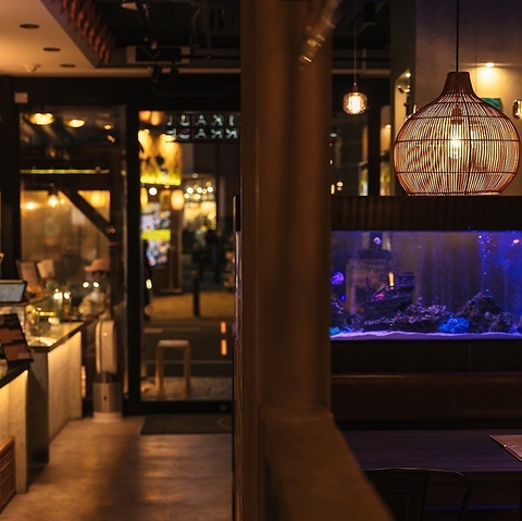 【立川で、南国リゾートに浸る贅沢時間】立川で味わう非日常。パイカジテラスは、水槽が彩る南国リゾート空間で、心癒される贅沢なひとときを提供します。熱帯魚が泳ぐ幻想的な景色で記念日・誕生日のディナーやランチ,昼飲みを楽しみながら、都会の喧騒を忘れる至福の時間を。ちょっとリッチなALLDAYダイニングです。