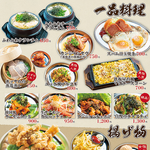 ANNYONは本格韓国メニューが目白押し!定番のヤンニョムチキンやチーズボール、広島牡蠣ミナリチヂミといった一品料理から、旨辛な特製ナッコプセなどの本格鍋までバラエティ豊かにご用意しています。〆にはプルコギキンパや冷麺もおすすめ。多彩な料理で大満足間違いなし!韓国居酒屋の気分を満喫してください!