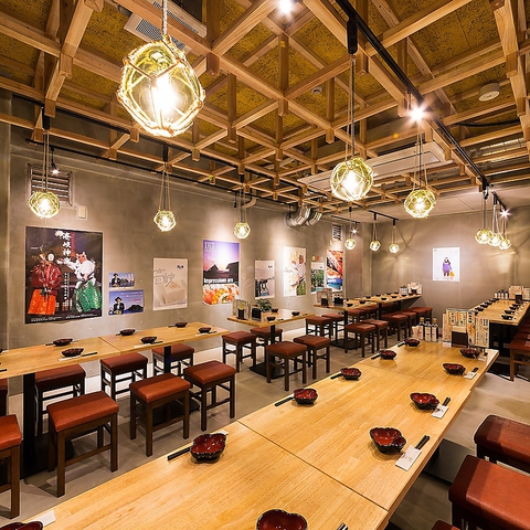 博多駅徒歩2分。アクセス抜群の居酒屋◎店内には少人数から大人数まで対応可能のテーブル席を大小様々ご用意しております。飲み放題付コースはご用意しておりますので、少人数宴会から女子会・各種飲み会にも最適です。広々とした店内で楽しいひと時をお過ごしください。