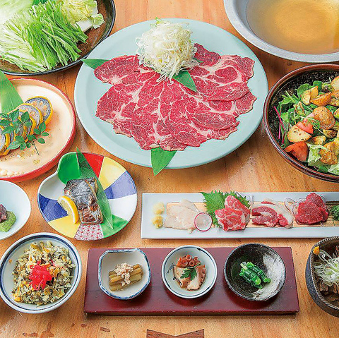 コース料理は飲み放題込で6000円から!郷土料理コースや馬しゃぶコース、お得な平日限定コースも有ります
