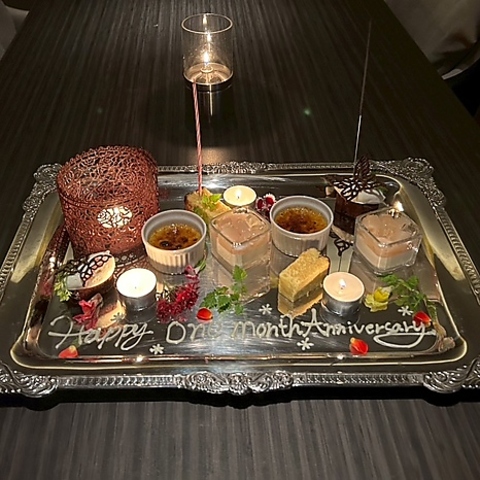記念日をお祝いする特別なデザートもご用意してます。コースご予約の方には無料でメッセージプレート有☆