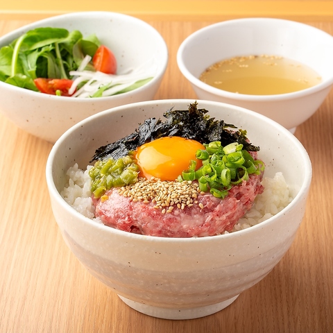 サラダ・スープ付・進化系ユッケ丼誕生!厳選されたやわらかな仙台牛のお肉をじっくりと低温で調理し、とろけるような美味しさを実現!シャキシャキわさびと特製醤油でお召し上がりください!