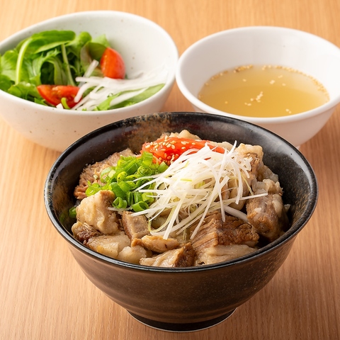 サラダ・スープ付衝撃の口どけ!旨味たっぷりの牛すじ肉をごろっと大きく切り出して、じっくり6時間以上かけてとろとろの牛丼に仕上げました!仙台牛のクセのない、やわらかな肉質を塩味でお楽しみください!
