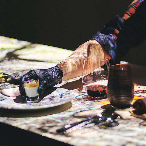 神戸の食の源泉となる「水」から始まるストーリー。神戸牛や神戸市西区の採れたての旬な野菜といった神戸の食材の魅力を、プロジェクションマッピングや特別な料理で表現。決まったメニューは無く、その日に仕入れたリアルタイムで最も旬な神戸の食材を使ってコース料理を提供いたします。