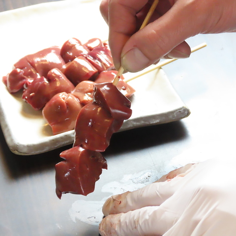 産地にこだわり、炭火にもこだわった焼鳥、秘伝のタレが美味さの決め手!一本ずつ丁寧に焼き上げます。
