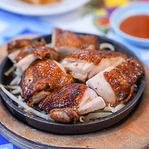 タイの国民食「カオマンガイ」!!鶏だしで炊いたご飯に香味野菜で茹でた鶏肉がのっており、秘伝ソースをかけていただく絶品のヒトサラです。≪新橋 居酒屋 タイ料理 貸切 ランチ 女子会 誕生日 新橋駅 タイ アジアン ビール≫