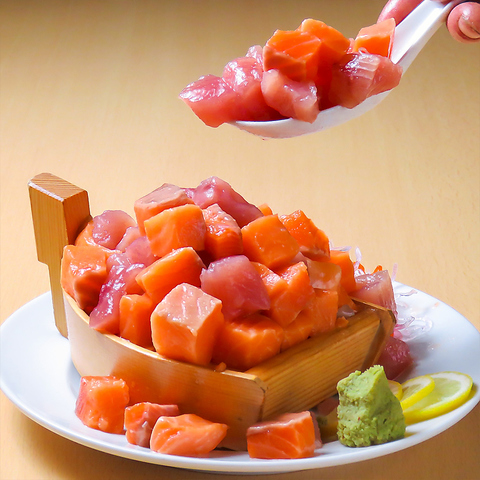 マグロサーモンが【わっしょい!わっしょい!】STOPする迄投盛り!更に海鮮も、40種の贅沢食べ放題