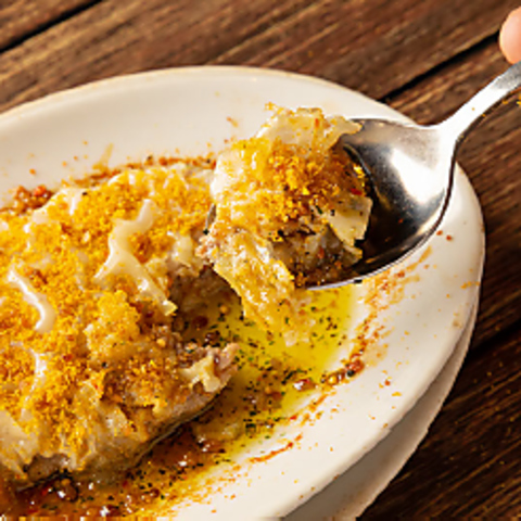 厚切りベーコンのクリームパスタをホールチーズへ入れて仕上げます。混ぜるほどに濃厚さが増していく、たっぷりのチーズと絡まった濃厚コク旨クリームパスタを体感してください。