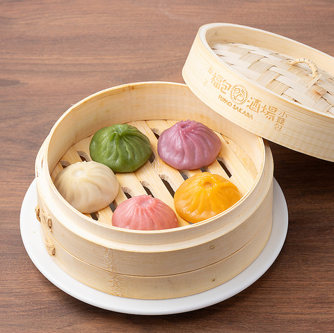 女性に大人気の見た目も美しい「五色小籠包」は、ぜひお召し上がりいただきたい逸品。皮に野菜を練りこんだ、ピンク・緑・黄・紫の色とりどりの小籠包が楽しめます。ふっくらもちもちの皮に包まれており、熱々の餡も旨味たっぷり!一口食べた瞬間に、肉汁がじゅわ~とあふれます◎