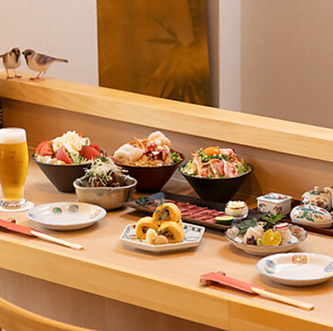 新鮮な魚介や希少部位の和牛など、素材にこだわった一品料理を豊富に取り揃えております。名物の創作もんじゃや、職人が目の前で焼き上げる鉄板焼きは、香りや音まで楽しめる五感を刺激する仕上がり♪熟練の技が光る逸品の数々を、2時間の飲み放題が付いたスペシャルなコースで贅沢に味わっていただけます。