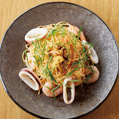 「カルボナーラ 半熟卵添え」等の定番メニューに加え、「生うにと海老、イカ、明太子スパゲティ(写真のお品)」等、オイル・トマト・クリームをベースにした濃厚ソースにたっぷりの具材を思う存分楽しめます。カラダが喜ぶ全16種のパスタの味をぜひ一度ご堪能ください。