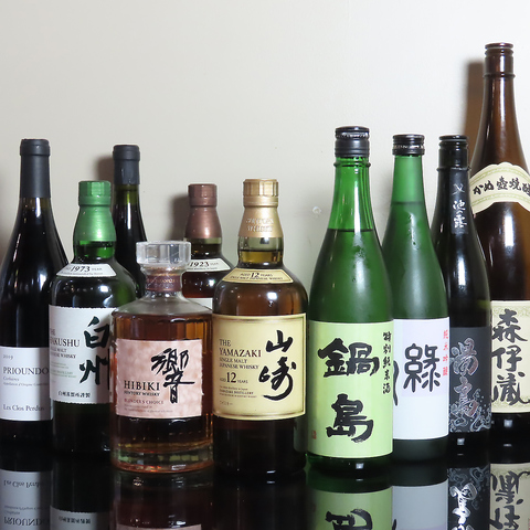 日本酒、焼酎、ウイスキー、ウォッカ、サワー、ワインなど様々な種類のお酒を取り揃えております。