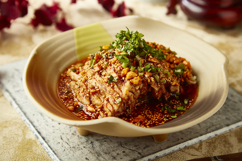 中国語で「口水」とは「よだれ」を意味します。料理名の由来は、四川省出身の二十世紀中期に活動していた文筆家の郭沫若。自著で、「故郷の四川省で少年時代に食べた、辣油や花椒味付けした茹で鶏を思い出すと、よだれが出る」と書いたことから、この料理が名づけられました。甘辛く大人の味が◎