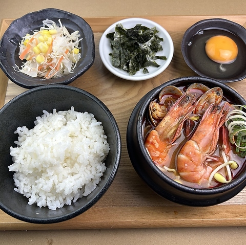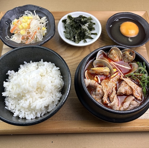 - 人気スン豆腐定食・単品【定食は、ごはん・生卵・韓国のり・サラダつき(店内飲食のみ)】