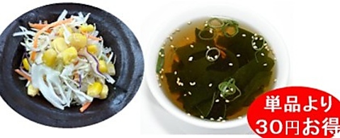 - 焼肉・唐揚げ定食【ごはん・キムチ・わかめスープ・サラダつき(店内飲食のみ)】