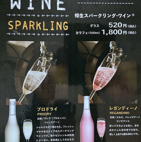 | ★樽生スパークリングワイン | ★プロドライ(白泡)/★レガンディーノ(ロゼ泡) |
