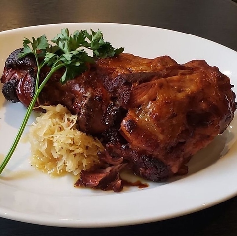 新潟県産の豚すね肉をとろっと柔らかく煮込んで、最後にこんがりと焼き上げました。脂肪が少なくコラーゲンが豊富です。