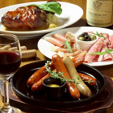 本場ドイツの味を再現!職人手作りの自家製ソーセージ!手間暇かけた自家製にこだわります。厳選した上質な肉を使い、秘伝のスパイスでじっくりと熟成させたソーセージは、市販品では味わえない濃厚な旨みと肉々しさ。樽生ビールと合わせれば、まさに至福のひととき。ぜひ、伝統の味と職人の技が詰まった逸品をご堪能ください。