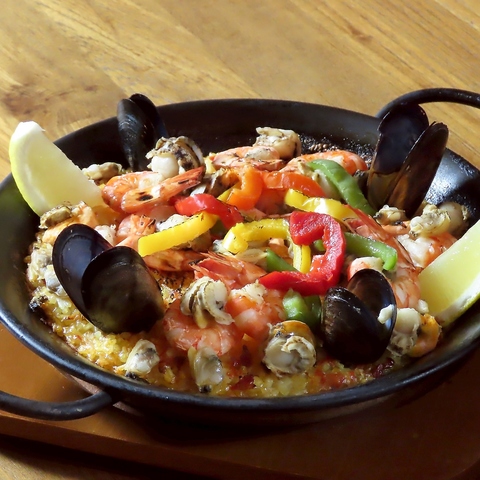 海の幸が溢れ出す!漁師風パエリア濃厚な魚介の旨みが米粒の一粒一粒まで染み込んだ、当店自慢のパエリアです。プリップリのエビ、肉厚なムール貝、アサリ… 新鮮な海の幸を惜しみなくたっぷり使用!仕上げにレモンをキュッと絞れば、爽やかな香りとコクが広がります。テーブルを華やかに彩る、リピーター続出の大人気メニューです!